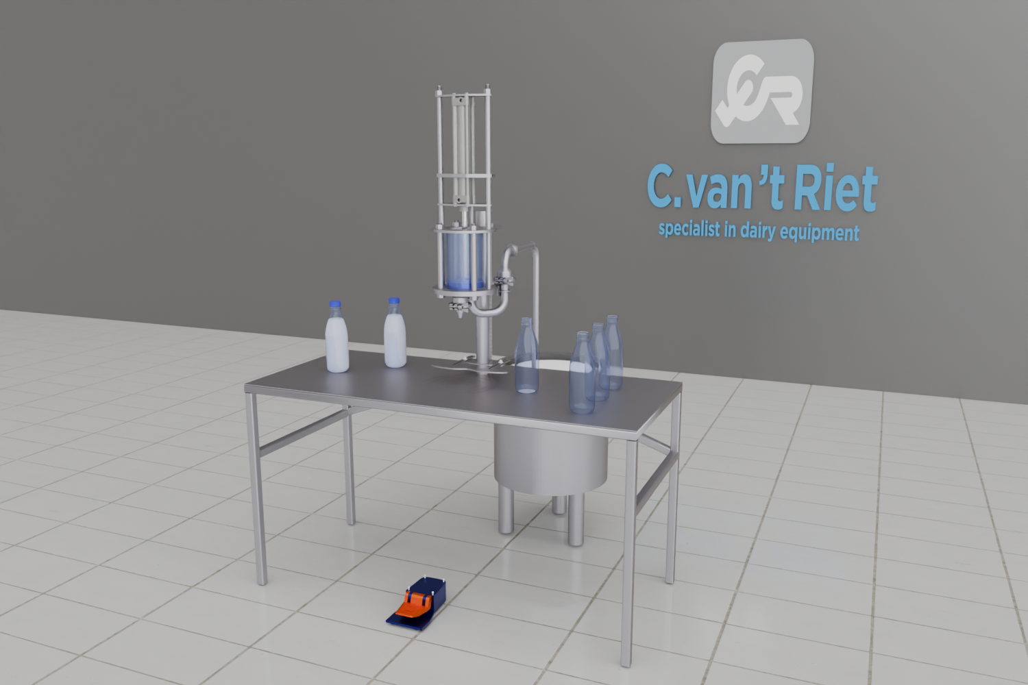 Ons afvulsysteem combineert eenvoud en efficiëntie, waardoor u per uur een aanzienlijk aantal flessen kunt vullen. Het systeem is geschikt voor zowel dunne als dikkere vloeistoffen, zoals melk, yoghurt en vla, en kan direct worden aangesloten op de uitloop van een melktank, standpasteur of andere melkbuffer.